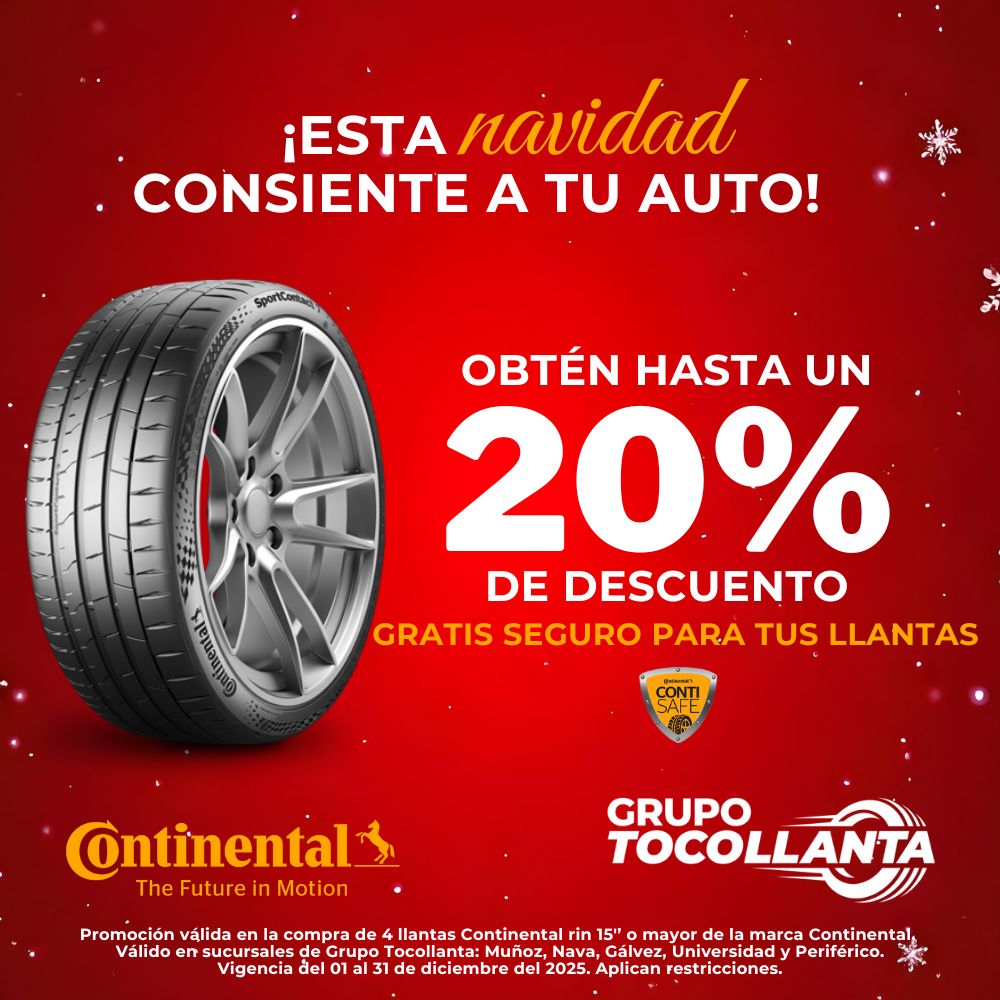 En la compra de 4 llantas de las marcas Continental te llevas gratis un vale de gasolina de $ 500 de gasolina